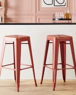 Set Di 2 Sgabelli Metallo Rosso Dorato CABRILLO