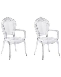 Aggiungi al tuo interno questo set di 2 sedie da pranzo in stile classico francese. È realizzato in policarbonato resistente e di alta qualità. I motivi decorativi si abbinano bene in qualsiasi spazio contemporaneo o d’ispirazione vintage.